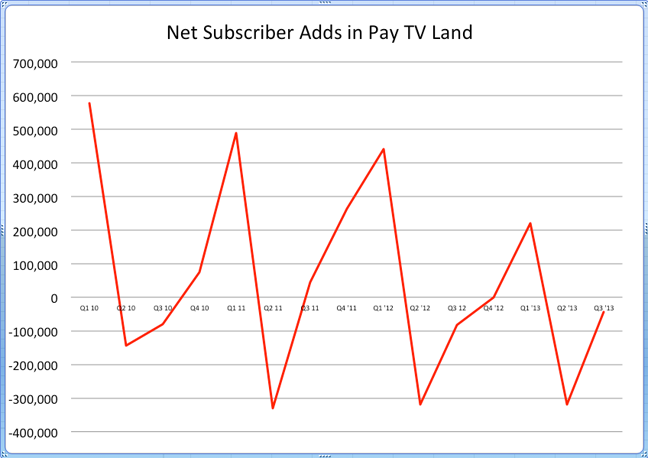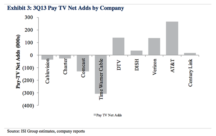 例如,在2013年第三季度,時代華納有線電視公司失去了30.6萬個電視用戶和2.4萬個寬帶網(wǎng)絡(luò)用戶。