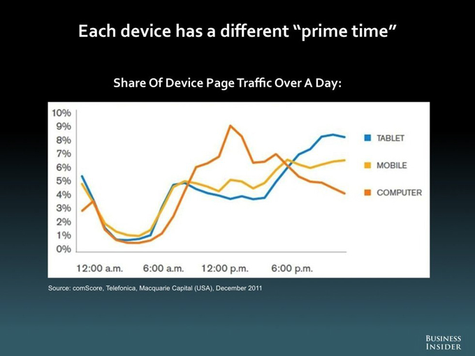在媒體行業(yè),iPad和其他平板電腦有時候被稱作“吸血鬼”媒體——它們往往會夜里出來搶占人們收看電視的時間。