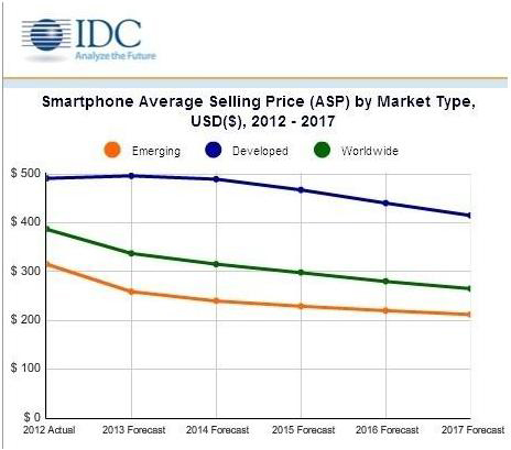 IDC預計智能手機價格會持續下降(圖片引自cnBeta)