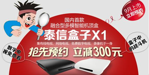 泰信盒子X1伴隨著國慶的來臨即將與消費者見面!據(jù)了解,這將是國內(nèi)首款融合型多模智能機頂盒,搭載了基于安卓4.2系統(tǒng)深度優(yōu)化的DTVOS數(shù)字電視操作系統(tǒng),將有線電視、網(wǎng)絡電視、地面數(shù)字電視接收、錄像機等多種功能集于一身。該盒子9月20日起在淘寶官方店(http://shop112060586.taobao.com/ )正式預售,商家讓利最高直降300!