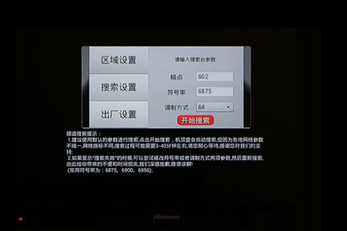 此時選中“電視直播”,系統(tǒng)會彈出區(qū)域設(shè)置的提示。我們可以設(shè)置區(qū)域點(diǎn)擊“保存并下載”;也可以選中搜索設(shè)置,點(diǎn)擊“開始搜索”按鈕,同樣可以搜到廣電提供的電視節(jié)目。總之,設(shè)置好節(jié)目列表之后,我們就可以順利觀看有線電視直播節(jié)目了。