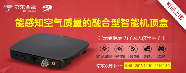 其實(shí)功能還不僅于此,融合型機(jī)頂盒還增加了檢測(cè)空氣質(zhì)量的功能,又省去了幾百元的空氣檢測(cè)器的費(fèi)用,讓我們?cè)诳措娨暤耐瑫r(shí),時(shí)刻檢測(cè)室內(nèi)空氣,重視身體健康。這種創(chuàng)新性的產(chǎn)品已經(jīng)在京東眾籌上市,大家感興趣的可去官網(wǎng)看看。