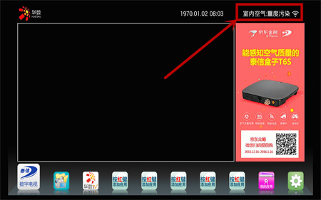 泰信盒子的UI界面一直是走簡約路線,凸顯有線電視特色。正版網絡視頻牌照方華數TV的內容,穩定流暢,更新速度也不錯。泰信盒子首頁的時間顯示在連接網絡后才會正確顯示。空氣質量監測功能是T6S的一大賣點。T6S屬主流配置,WIFI信號接收能力強勁,視頻和音頻解碼能力出眾。