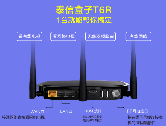 泰信電子近期推出一款智能電視網關,融合了廣電有線機頂盒、網絡機頂盒、路由器,通過RF同軸線連接看廣電有線電視,無線輻射被限制在同軸屏蔽線內;看網絡電視時,網絡信號在內部完成轉換,一方面可減少wifi帶寬占用,避免卡頓緩沖,另一方面能大大減少電磁輻射,同時在需要手機、筆記本電腦等移動終端聯網時才會通過wifi連接,上網會更順暢。大家可不要簡單的理解成一臺機頂盒外加一款路由器,其存在的意義主要就在于減少wifi輻射、減少卡頓、減少電視柜的盒子及路由器數量,布線簡潔,安全健康。