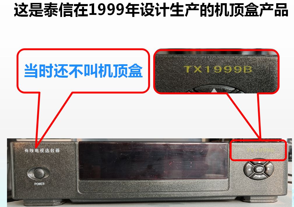 TX1999B是泰信在1999年生產(chǎn)的一款“有線電視選臺器(機頂盒的曾用名)”。此后,Digital Set Top Box(數(shù)字機頂盒的英文)技術(shù)開始從國外引入中國?!斑x臺器、機上變換器、上下變頻器”的老稱謂逐漸被“機頂盒”代替。讓人意想不到的是,這款20年前生產(chǎn)的TX1999B,在通電后還能正常工作(點擊了解更多)。
