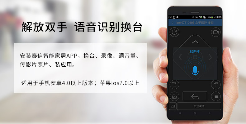 泰信率先引領(lǐng)有線電視進(jìn)入智能四核時(shí)代,是廣電有線電視+網(wǎng)絡(luò)電視領(lǐng)軍品牌!T6A搭載自主研發(fā)的直播電視操作系統(tǒng)DTVOS,1G內(nèi)存+8G閃存,支持4k超高清、H.265、3D藍(lán)光,畫(huà)質(zhì)更清晰,操控更流暢!綠色節(jié)能設(shè)計(jì)。泰信20年技術(shù)積淀,值得信賴!泰信盒子變身智能家居控制中心,體驗(yàn)全新升級(jí)。