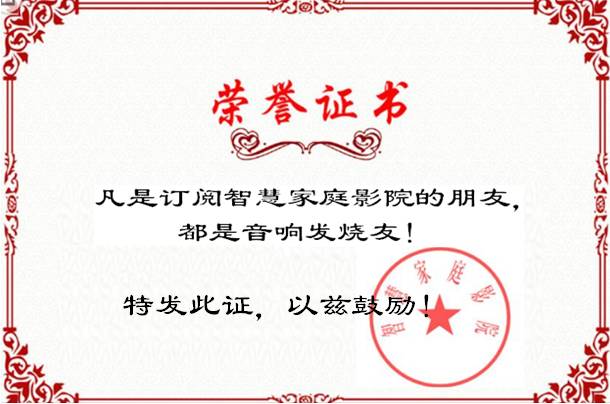 智慧家庭影院對發燒友的定義就是愛好音樂、追求生活品質的人,當然也包括正在閱讀此文的你。頒發證書如下: