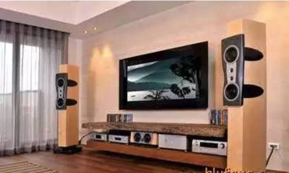 為了獲得理想的聲音,可以像下面這樣給電視配備一套音響系統,但這并不是大多數人的條件所能具備的。
