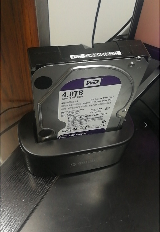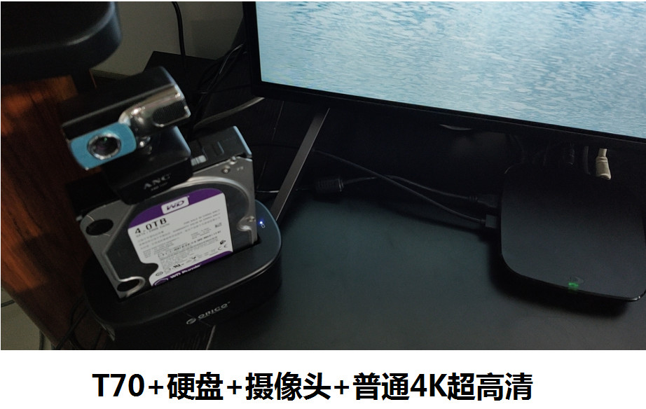 這是插在T70上存儲照片和視頻的4T硬盤及硬盤盒。硬盤盒上有電源開關,在需要的時候打開電源,不用擔心隱私泄露。如果T70在10分鐘左右不操作硬盤,硬盤停止轉動。