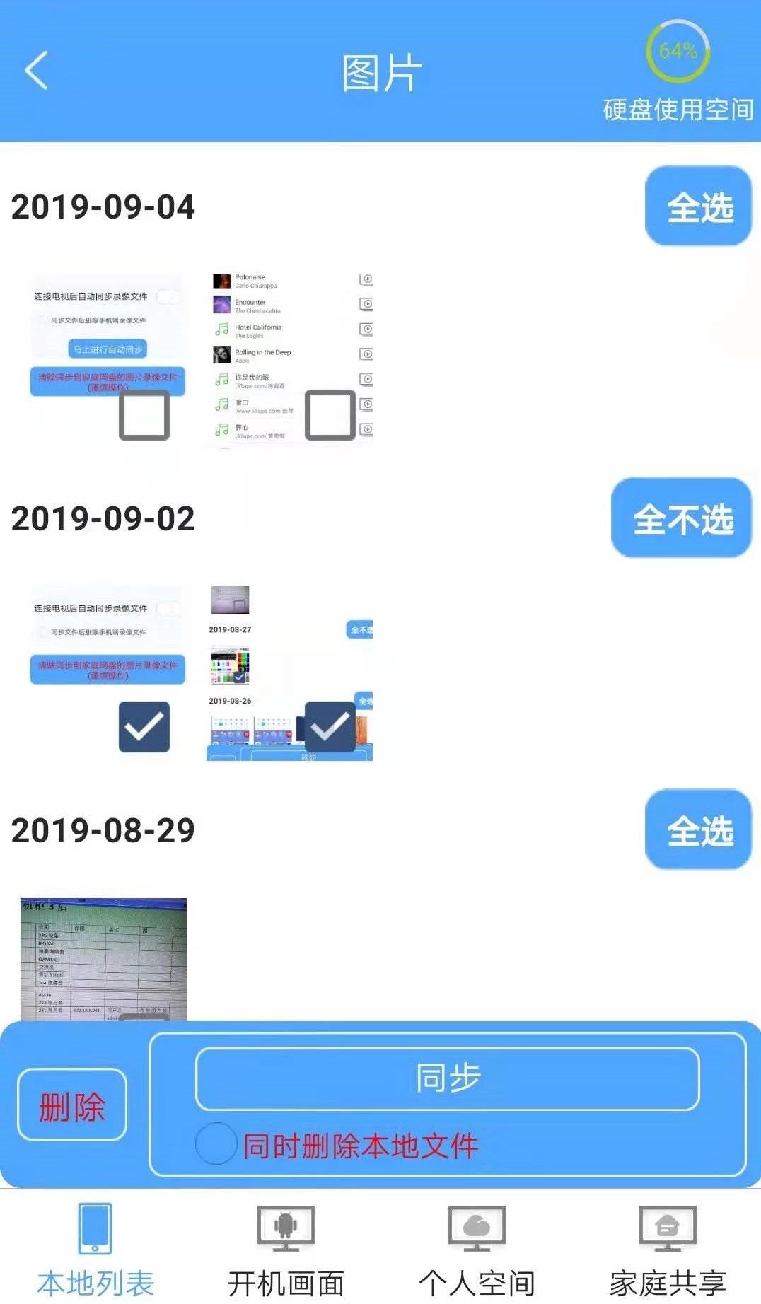 同步照片和視頻時有兩種方式:一種是將手機中的照片和視頻自動同步到硬盤后,手機中的也照樣存在;另一種是同步完成后自動刪除手機中已同步到硬盤中數據,釋放手機存儲空間。個人更傾向于前者,對于不需要的數據可以選擇手動刪除,把重要的照片和視頻在手機中也備份一個。