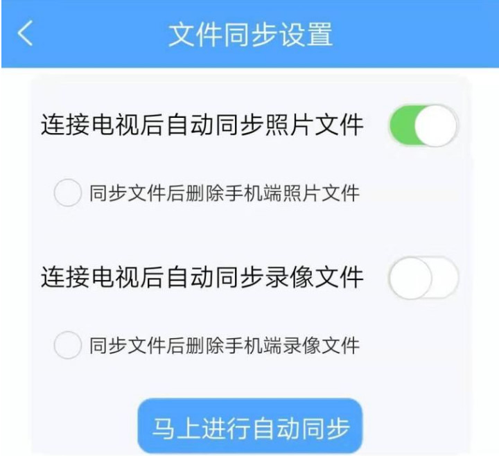“我的/設置/文件同步設置”中,有一個同步照片和錄像文件的選項,當選擇自動同步時時,只要進入手機應用,會自動將手機中的照片或錄像同步到硬盤中,非常方便。
