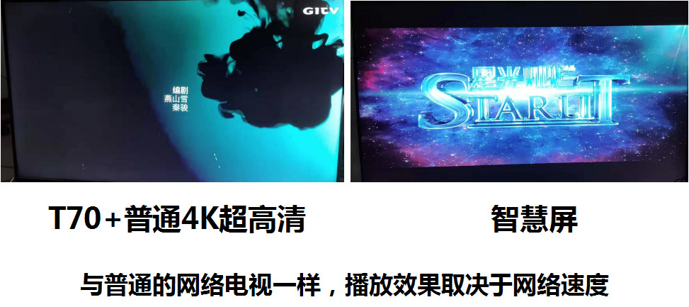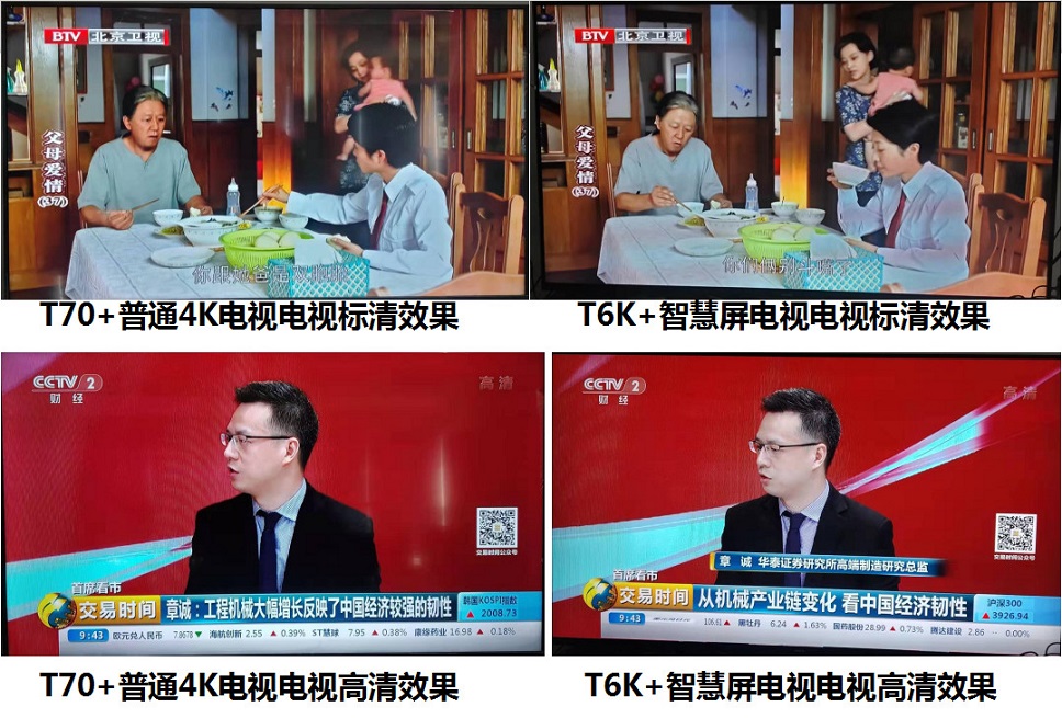 把T70與T6K對調效果一樣。這說明,如果連接普通高清電視,T70和T6K沒什么區別,普通電視與智慧屏也沒啥區別。