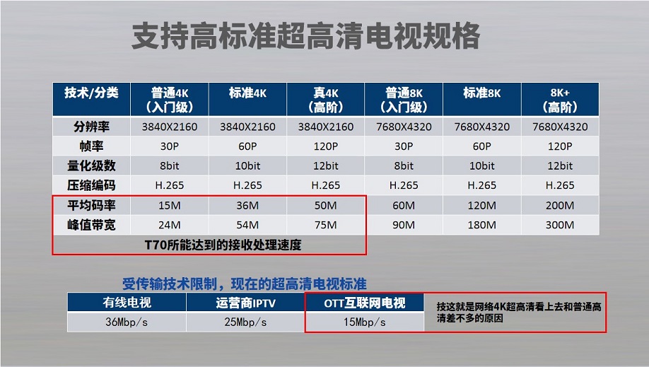 泰信T70支持下一代有線電視技術標準DVB C2,可接收高達80Mbps的超高清直播電視頻道信號,華為智慧屏需要外接機頂盒。