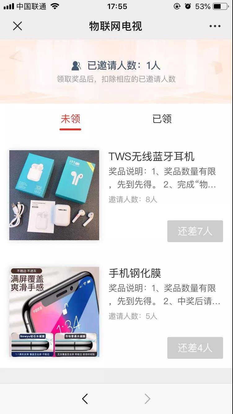 (1)邀請5位好友助力得高端手機鋼化膜